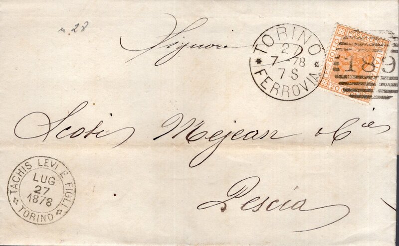 Zwischen 1870 und 1890 befand sich Torino in einer Phase des strukturellen Wandels, nachdem die Stadt ihre Rolle als erste Hauptstadt des Königreichs Italien abgegeben hatte. Die Einwohnerzahl wuchs dennoch kontinuierlich, getragen von frühen industriellen Aktivitäten, Handwerk und einer sich modernisierenden Verwaltung. Die Verkehrsanbindung spielte eine zentrale Rolle: Torino war über wichtige Eisenbahnlinien mit Genova, Milano und dem französischen Raum verbunden, insbesondere durch die strategische Achse über den Mont‑Cenis‑Tunnel. Diese Verbindungen stärkten Handel, Mobilität und die wirtschaftliche Integration Norditaliens. Auch die Postgeschichte entwickelte sich weiter. Die nationale Vereinheitlichung des Postwesens führte zu neuen Stempeltypen, effizienteren Strukturen und regelmäßigen Zustellrhythmen, die Torino fest in das Kommunikationsnetz des jungen Staates einbanden. Insgesamt festigte die Stadt in diesen Jahrzehnten ihre Position als industrielles und administratives Zentrum des Nordwestens.