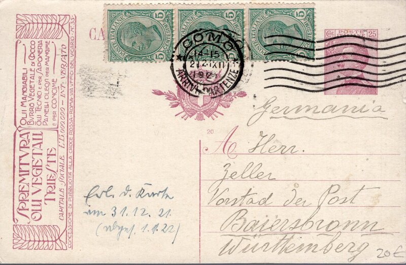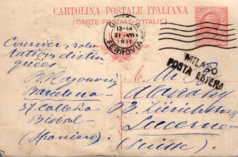 Flyer (die in Italien bevorzugte Schreibweise) / Flier (die von Jürgen Wittkowski) / Hey Dolphin (Dr. Kohlhaas) / International Postal Supply ... Alles die gleiche Maschine (bzw. Varianten, die sich in den Stempeln nicht unterschieden lassen.) Die Flyer wird ab 1910 in Mailand verwendet (getestet?). Bis ca. 1970 werden Flyer in Italien verwendet, wobei es sich bei den späten Verwendungen um italienischen Lizenznachbauten handelt. Die eingesetzen Buchstaben in die Wellen sind typisch für die ersten Flyer, und lassen sich auch in anderen europäischen Ländern beobachten (Brüssel setzt dies über mehrere Jahre mit ein), in Italien gibt es diese Buchstaben hauptsächlich in den frühen Jahren (1910-14) und dann noch mal mal in den Jahren 1926-1928. In den Jahren dazwischen werden - wenn keine Werbeeinsätze verwendet werden - meistens 7 steigenden Wellen (durchgehend, ohne Buchstaben) eingesetzt.